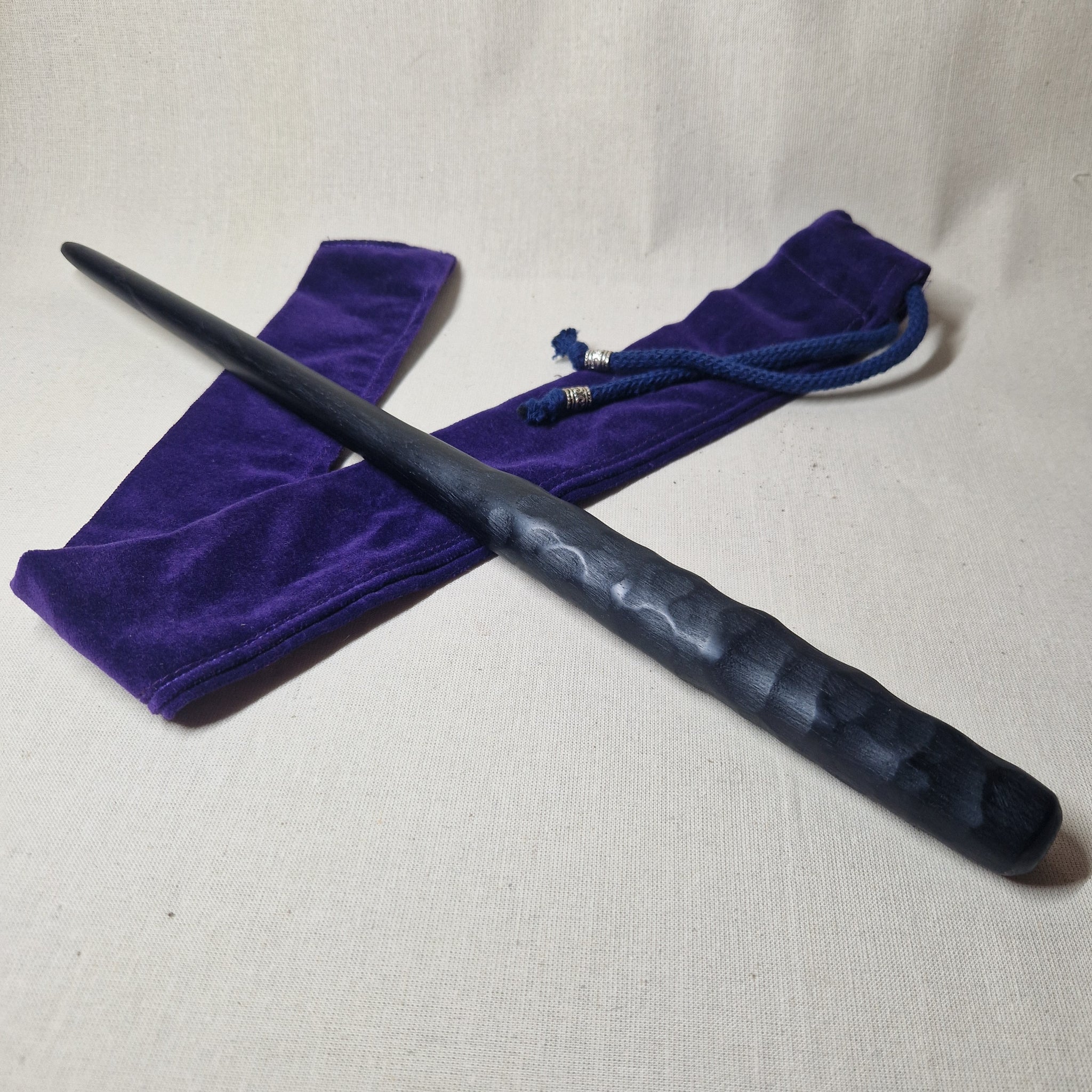 The wands I craft are tactile and have good balance in the hand. They are intuitively worked with respect for the wood and its own unique properties. Once formed they are treated with natural oil and pure beeswax, then encased in a velvet drawstring bag, ready to be bonded with their new owner.